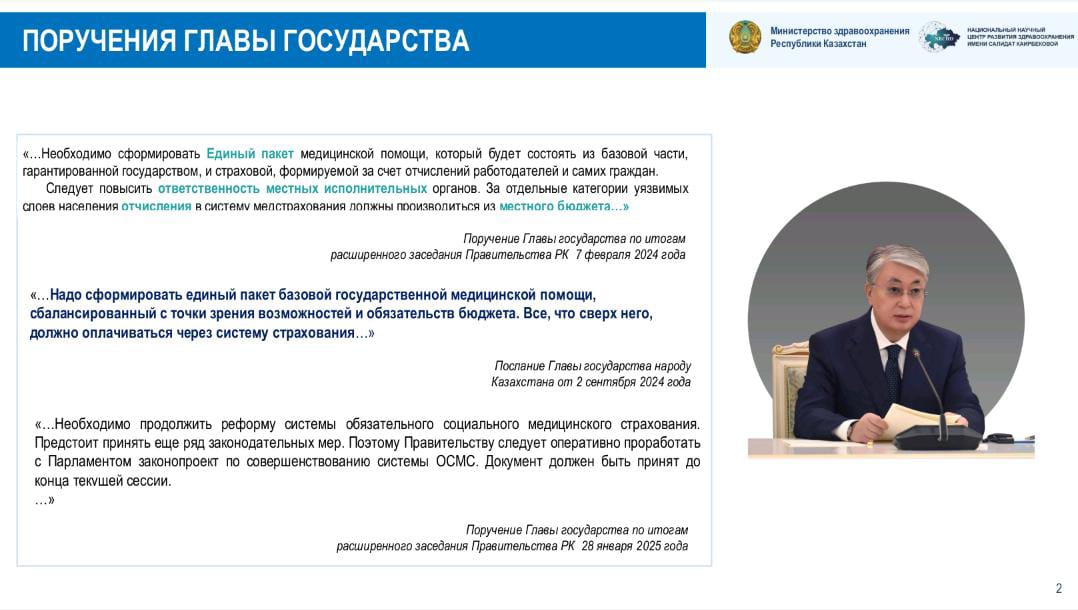 Закон направлен на повышение эффективности системы обязательного социального медицинского страхования (ОСМС) и максимальный охват населения медицинской помощью.
